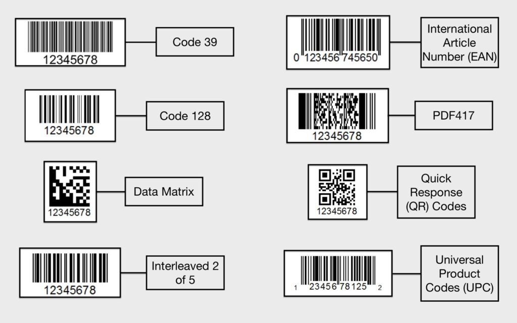 - UPC (Universal Product Code): Commonly used in retail for product identification.