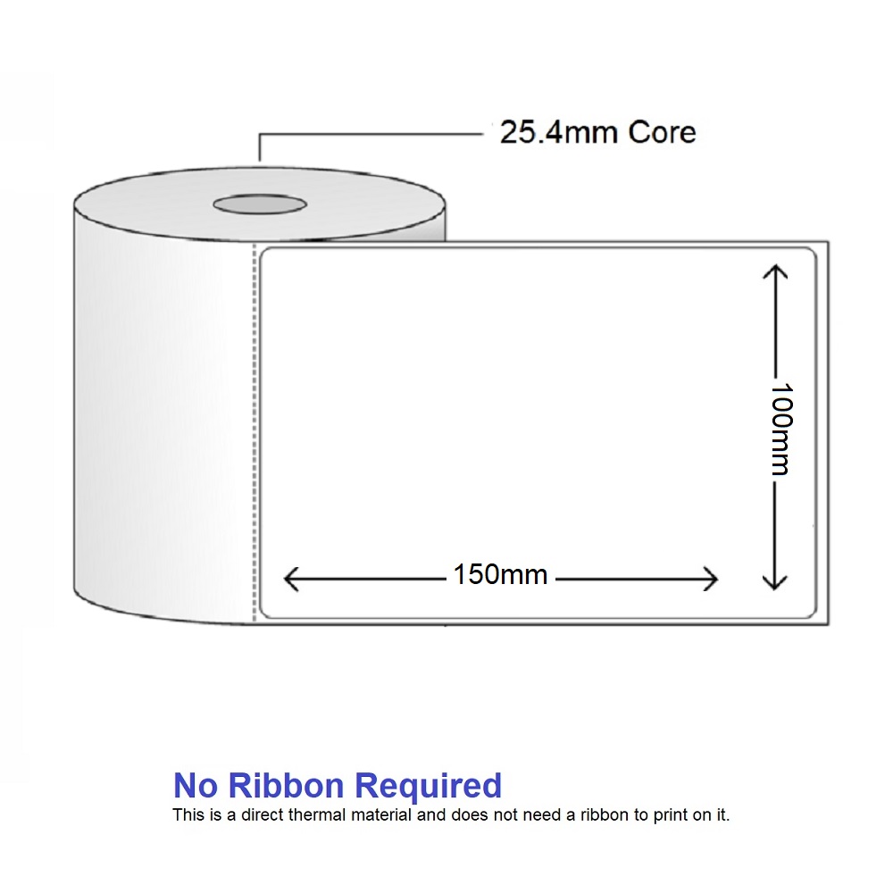 Direct Thermal Labels – 100mm x 150mm – 500 label per roll – 25mm core