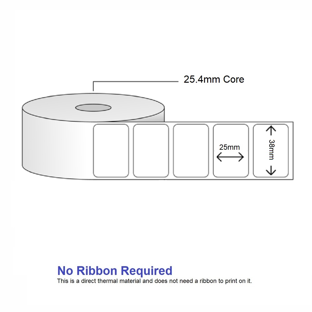 Direct Thermal Labels – 38mm x 25mm – 1000 label per roll – 25mm core