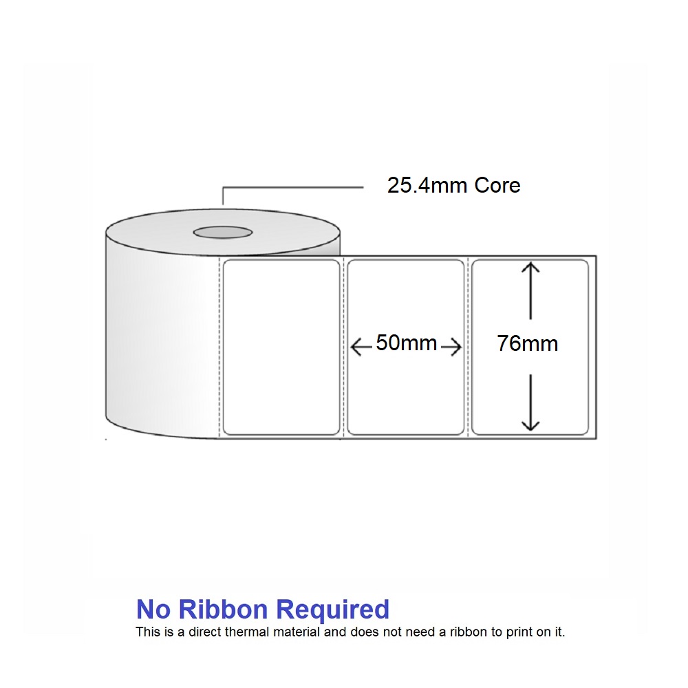 Direct Thermal Labels – 76mm x 50mm – 1000 label per roll – 25mm core