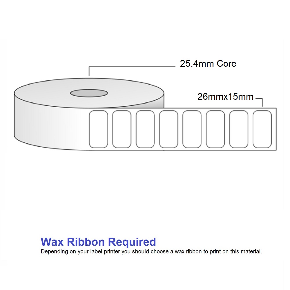 Thermal Transfer Labels – 26mm x 15mm – 1000 label per roll – 25mm core