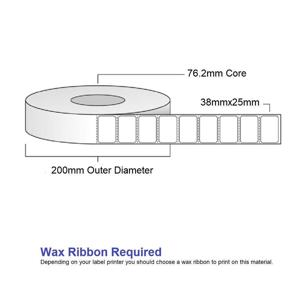 Thermal Transfer Labels – 38mm x 25mm – 5000 label per roll – 76.2mm core