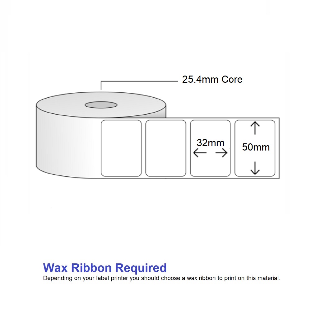 Thermal Transfer Labels – 50mm x 32mm – 1000 label per roll – 25mm core