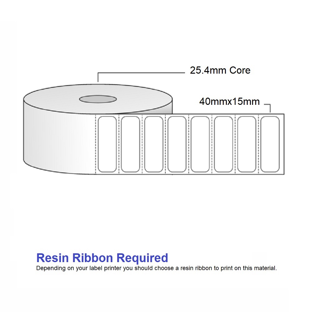 Synthetic Silver Thermal Transfer Labels – 40mm x 15mm – 1000 label per roll – 25mm core