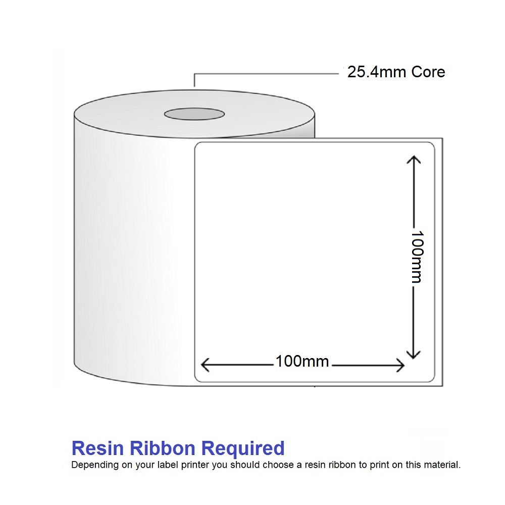 Synthetic White Thermal Transfer Labels – 100mm x 100mm – 500 label per roll – 25mm core