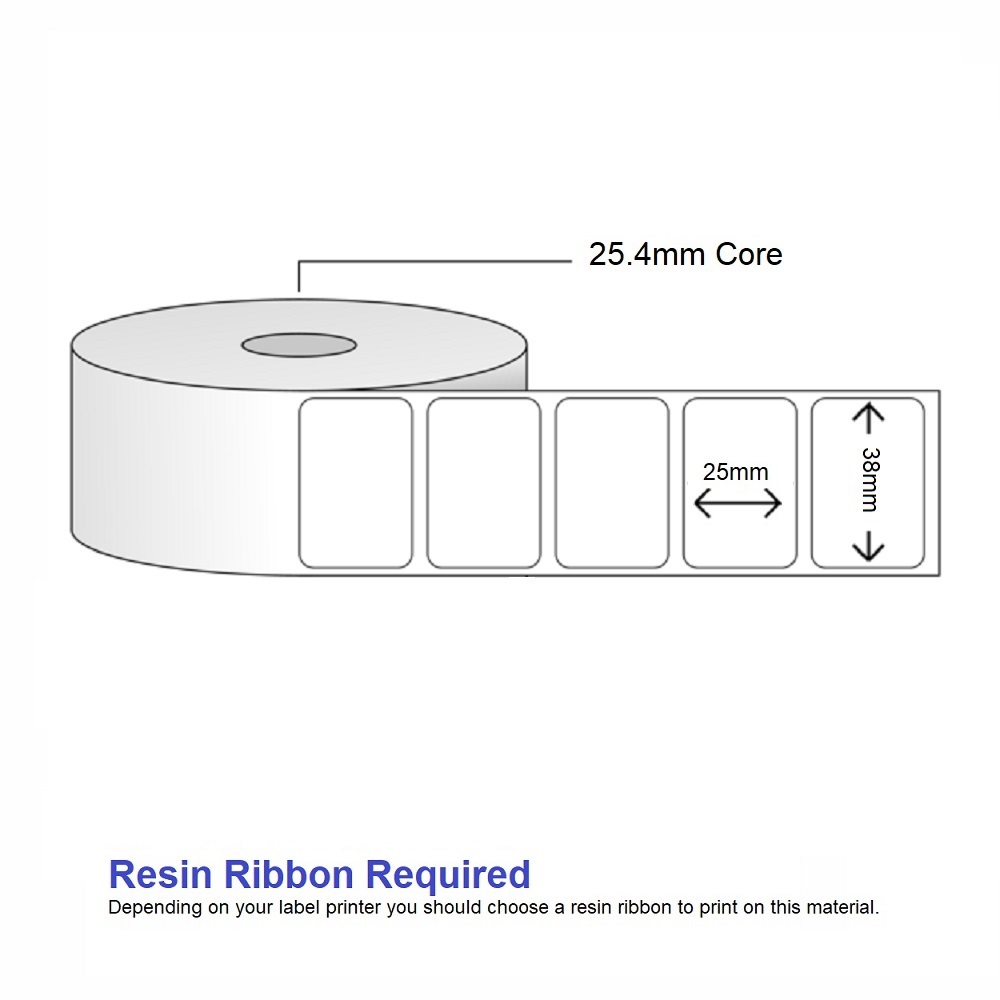 Synthetic White Thermal Transfer Labels – 38mm x 25mm – 1000 label per roll – 25mm core