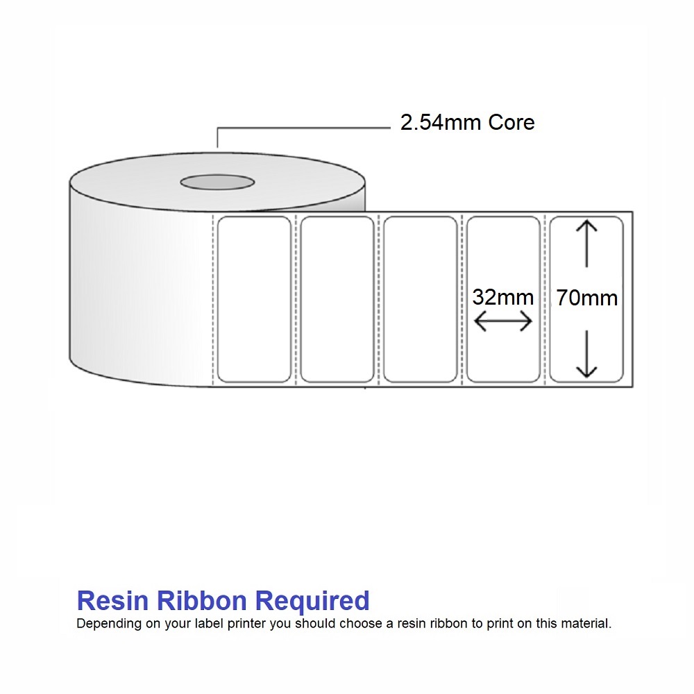 Synthetic White Thermal Transfer Labels – 70mm x 32mm – 1000 label per roll – 25mm core
