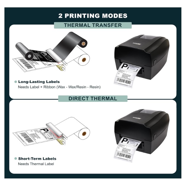 - Thermal Transfer (Using Ribbon) + Direct Thermal (Without Ribbon)