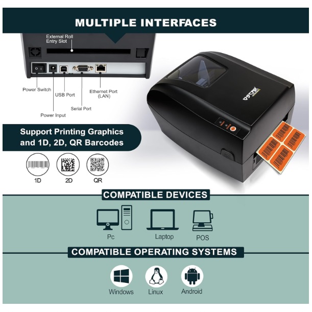 - ZPL | TSPL | ESC/POS Compatible