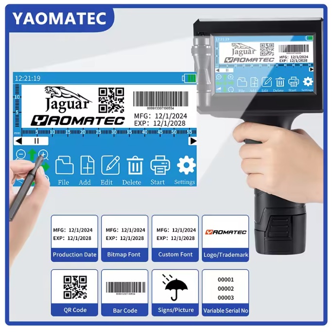 The handheld thermal inkjet printer is user-friendly, with a 4.3-inch touch screen that allows for easy navigation and customization of print settings. The printer’s storage capacity of 1000 messages enables users to store multiple print jobs, ensuring efficiency and consistency in production. The ability to print 1-8 lines or unlimited lines, depending on the user’s needs, makes this printer suitable for a wide range of applications, from expiry dates to complex logos and graphics. - Durability and Reliability